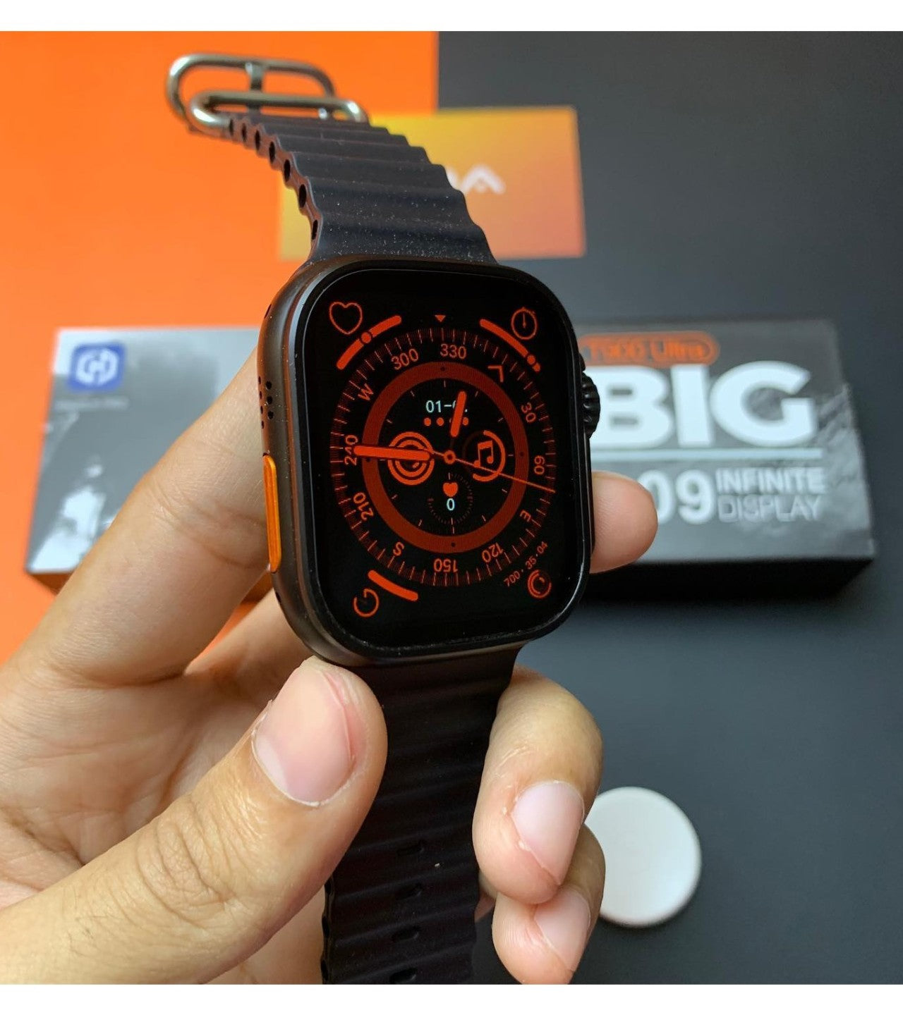 T900 Ultra 2.09 Inch Big Display Bluetooth Calling Series 8 With All Sports Features & Health Tracker, Smartwatch Black & Orange